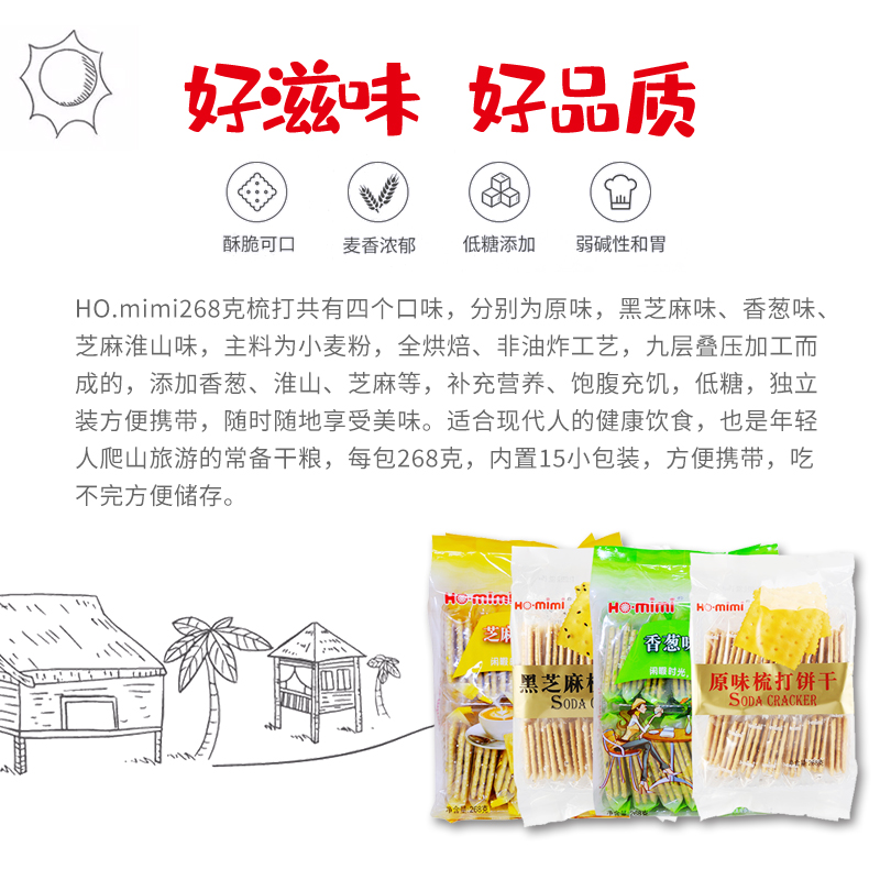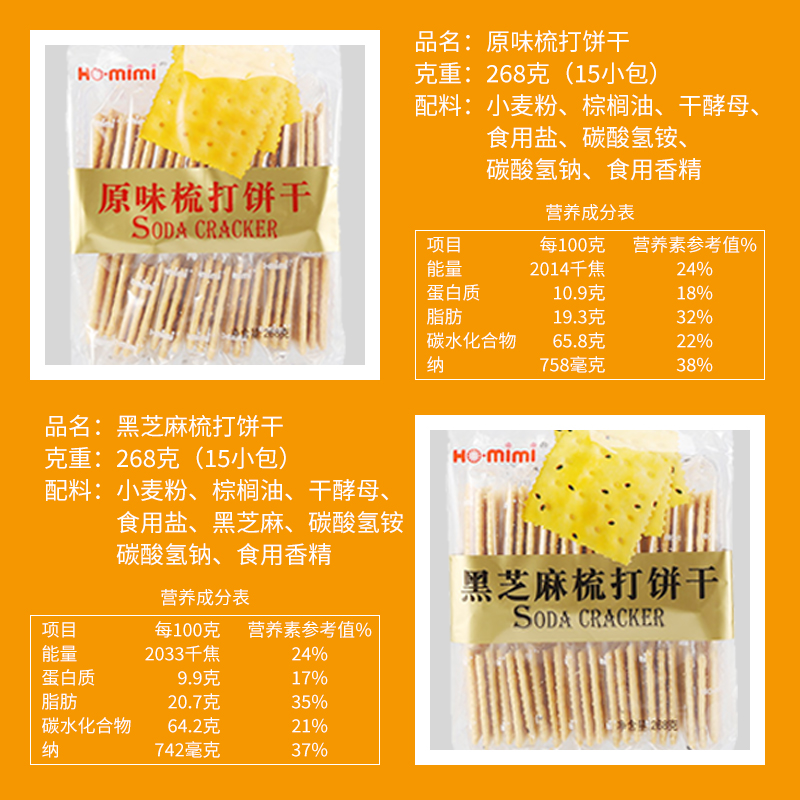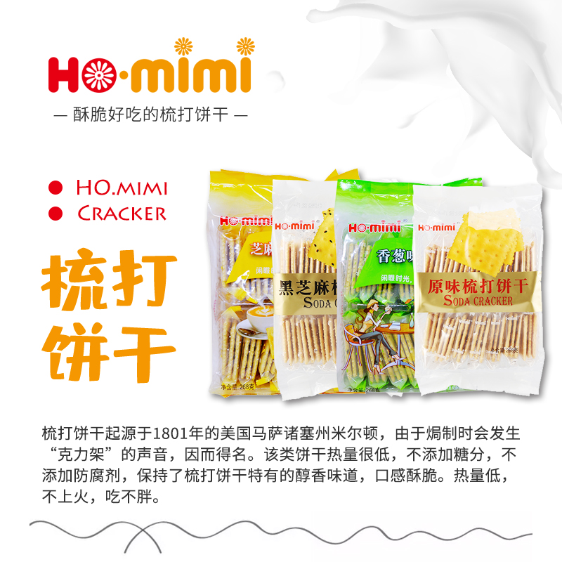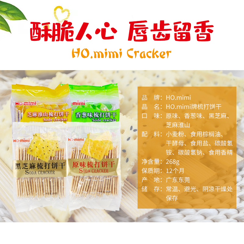 原味梳打餅干、黑芝麻梳打餅干、香蔥味梳打餅干、芝麻淮山梳打餅干