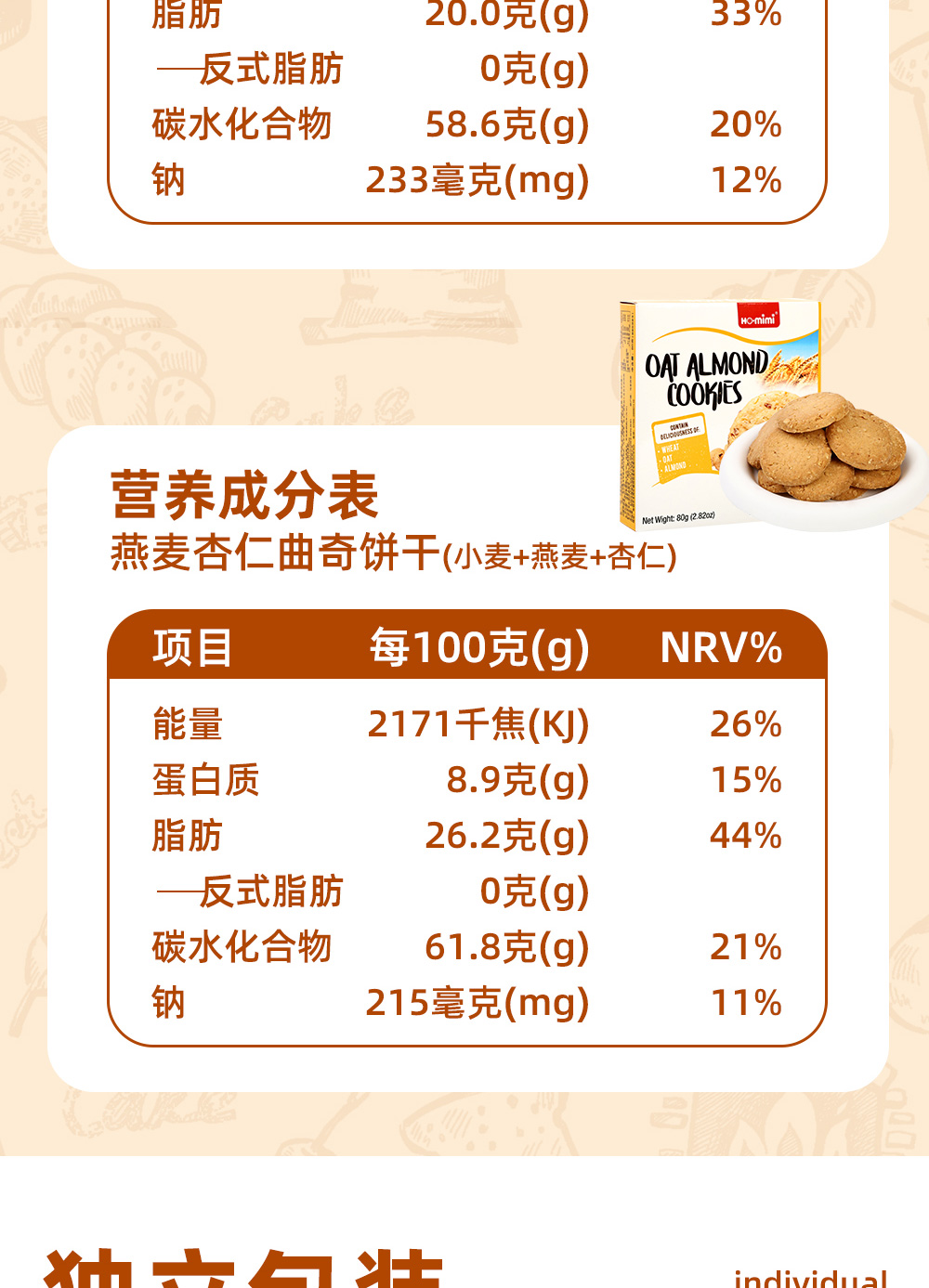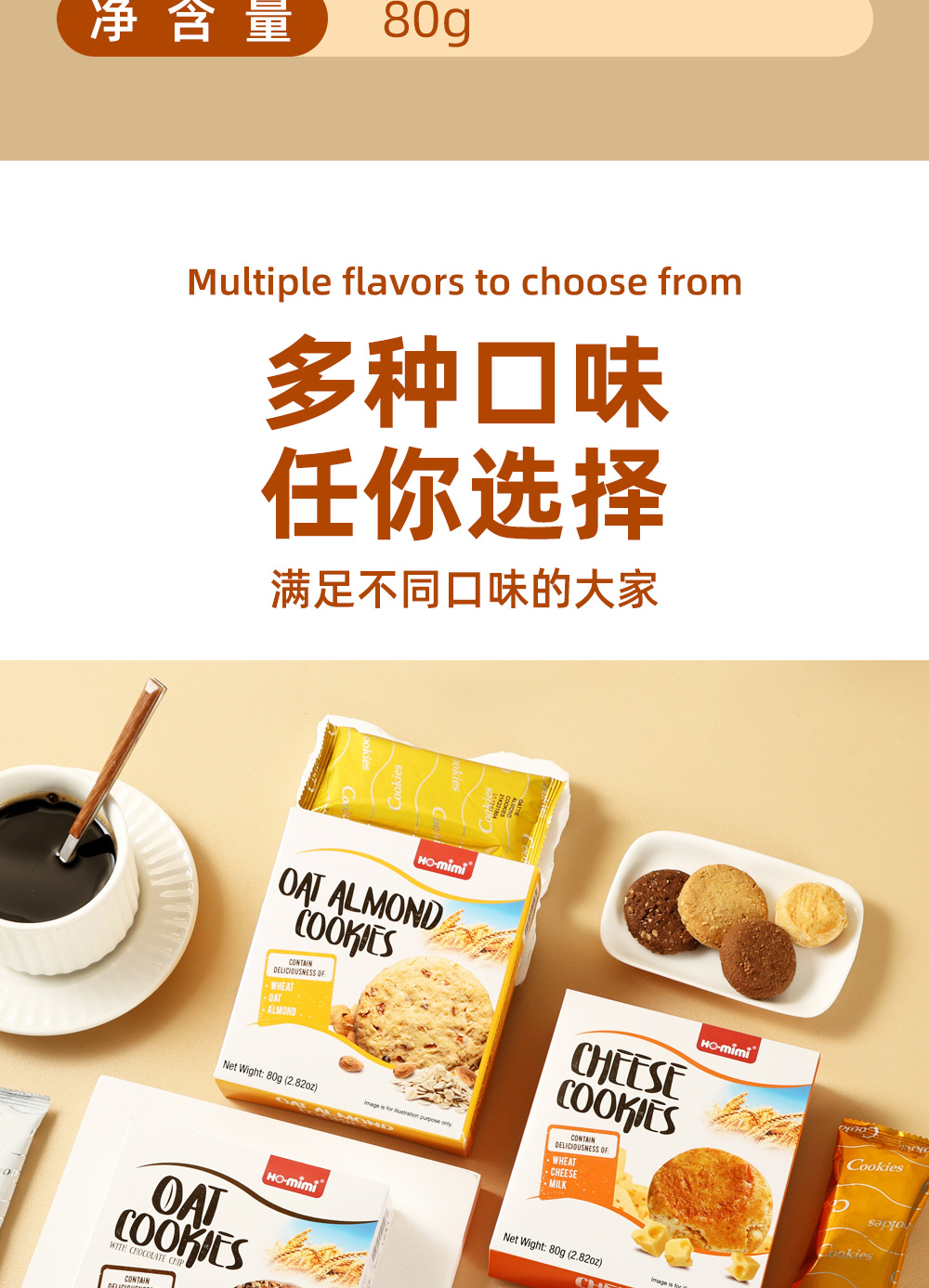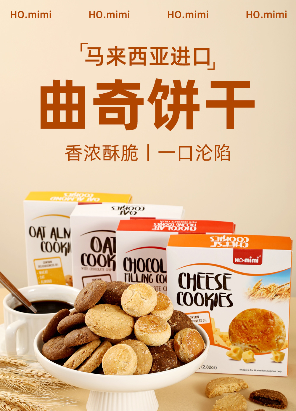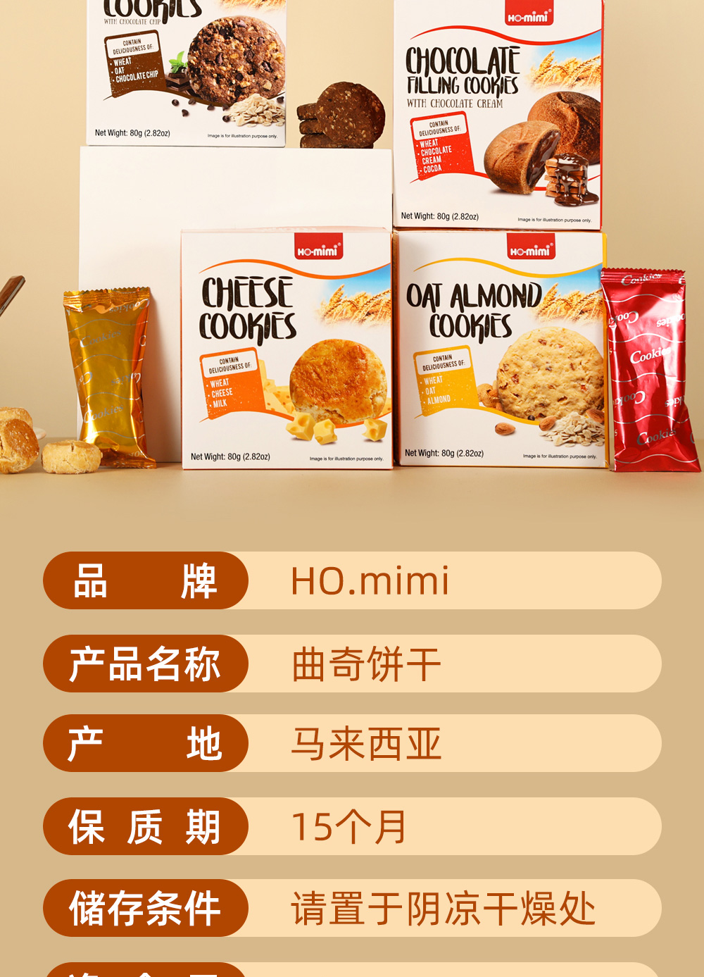 巧克力醬夾心曲奇餅干、干酪曲奇餅干、燕麥杏仁曲奇餅干、燕麥巧克力粒曲奇餅干