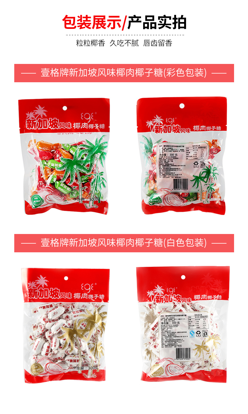 壹格牌-新加坡風味椰肉椰子糖-300g/袋
