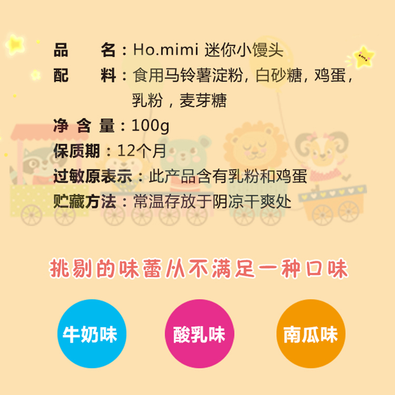 牛奶味迷你小饅頭、南瓜味迷你小饅頭、乳酸味迷你小饅頭